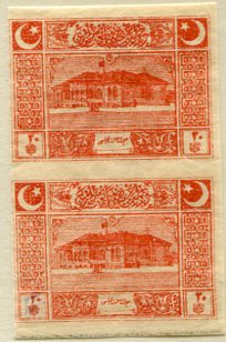 Anatolian Government: 1922 (January). First Parliament House, Ankara 20pa mint o.g. imperforate vertical pair. Isfila 1098DE11. *