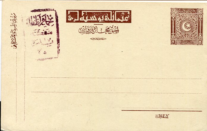 Turkey: 1922 unused 2k postal stationery card handstamped ‘Himaye-i Etfal Menfaatine Para 20’ (for the child welfare society) in black violet. Isfila AN154C