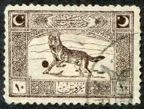 Turkey: 1922 (January). Genoa printing pictorial issue 10k Legendary Grey Wolf with ball at foot error struck by part datestamp. Isfila 1084Be194, Burak 895I