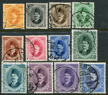 Egypt: 1923-24 King Fuad I portrait used set of 12. Sg. 111/122