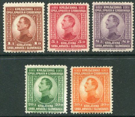 Yugoslavia: 1923 (23 January). King Alexander redrawn portrait unmounted mint set. Mi. 169/173, Sg. 189/193. **