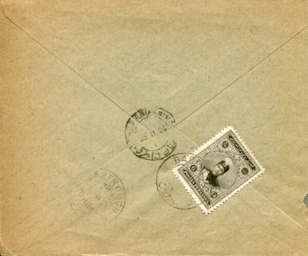 Iran: 1924 (19 February). ‘Khalil Ebn Mohammad Ali Barforuchi’ imprinted commercial cover to Teheran franked with 6ch Ahmed Mirza portrait tied by BARFROUCH datestamp and 25 February Teheran arrival cds’s.