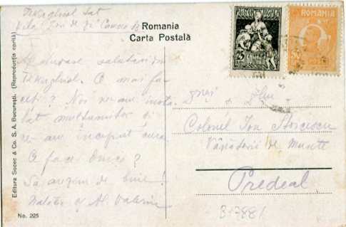 Romania: 1924 Postcard titled ‘Techirghiol. Plaja’ (ed. Socec & Co) to Predeal franked with 50b and 25b postal tax tied by dispatch cds.