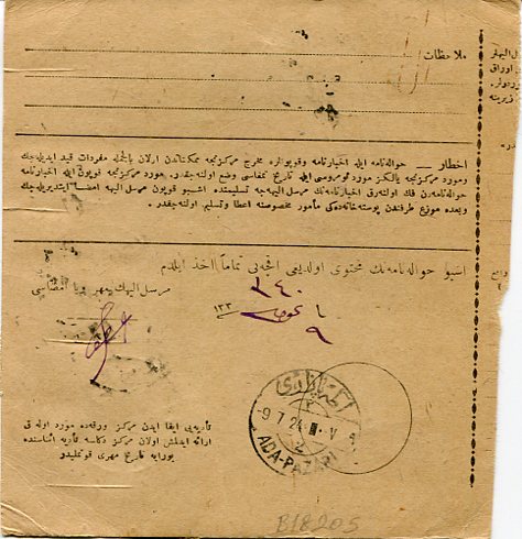 1924 Turkey Kandira Mix Frank Money Order