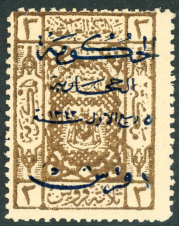 Hejaz: 1925 Jeddah surcharge in blue 1pi. on 3pi. brown mint o.g. Sg. 170 *