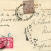 India / Iran: 1925 (9 February). Postcard titled ‘Residency, Bushire’ (ed. A.R. Fernandez) to England franked with 1a KGV India stamp tied by illegible datestamp and struck by ‘T’ and 1 1/2 D handstamps, franked with 1/2d and 1d Great Britain postage due stamps tied by 2 March RUGBY STATION datestamp.