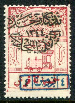Nejdi Occupation of Hejaz: 1925 (23 December). ‘Commemoration of Jeddah, 1344, Postage of Nejd’ handstamped 4pi on 500pi Hejaz Railway Tax stamp, mint o.g. Sg. 252 *