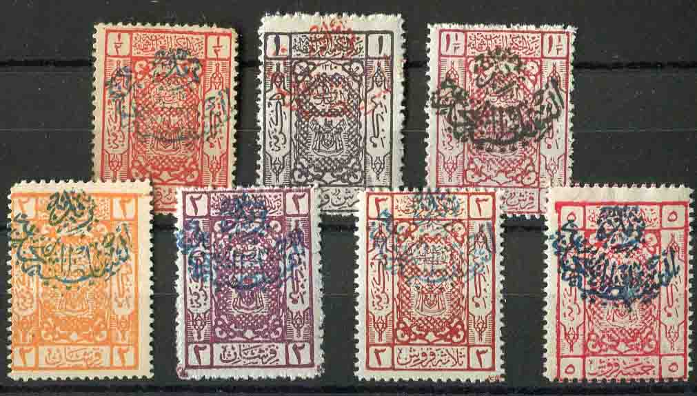 Nejdi Occupation of Hejaz: 1925 (July-Aug). “Nejd Sultanate Post” handstamped Hejaz postage stamps mint o.g. set of 7. SG 225/231