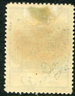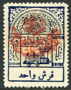 Nejdi Occupation of Hejaz: 1925 (July-August). Nejd Sultanate Post handstamp in red on mint o.g. 1pi Hejaz Railway Tax stamp. Sg. 218 *