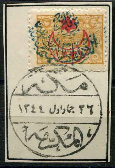 Nejdi Occupation of Hejaz: 1925 (July-Aug). “Nejd Sultanate Post” handstamped on 5pa and 10pa of Ottoman stamps on piece with Mecca CTO. Sg 215