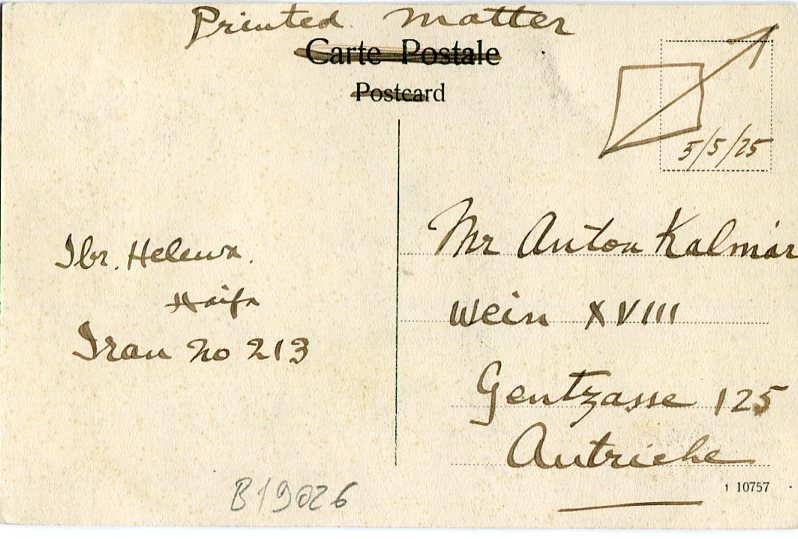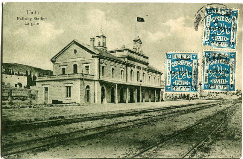 Palestine: 1925 (5 June). Postcard titled ‘Haifa Railway Station’ to Austria franked with three 3m Palestine overprinted EEF stamps tied by Haifa datestamps.