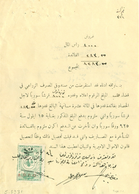 1925 Syria document ADPO 4pi Ottoman Revenue