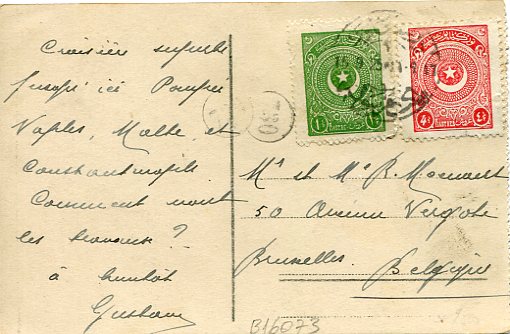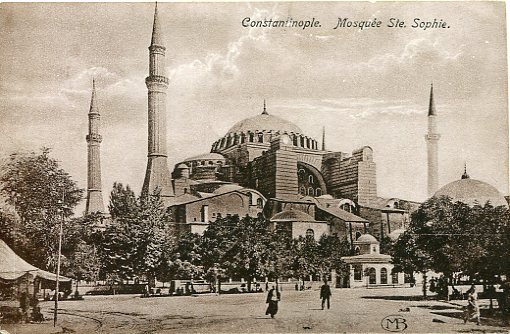 Turkey: 1925 (24 September). Postcard titled ‘Constantinople. Mosquee Ste. Sophie’ to Belgium franked with 1 1/2pi of first and 4 1/2 pi of second printing star & crescent definitive for six piastres foreign postcard rate tied by Istanbul datestamp.