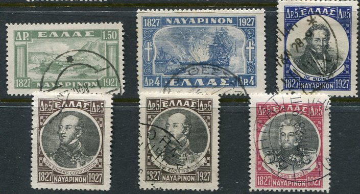 Greece: 1927 (20 October)-28. Battle of Navarino used set. Sg. 427/432, Hellas 485/490.