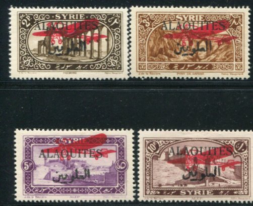 Syria – Alaouites. 1926 (1 May). Red aeroplane and Alaouites overprinted on Syrian stamps airmail issue mint o.g. set. Sg. 44/47. *