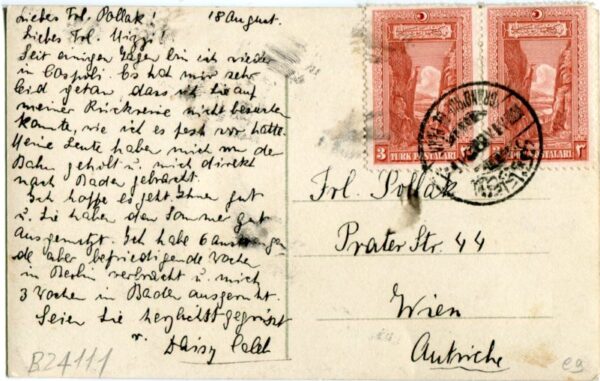Turkey: circa 1926 (18 August). Istanbul photocard to Vienna, Austria franked with pair of 3k Railway on Sakarya Gorge stamps tied by Pera datestamp. Isfila 1163