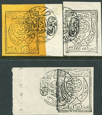 Yemen Kingdom: 1926. Imam Yahya set of three on laid paper struck by CTO  negative seals. Mi. 1/3, Sg. 1/3