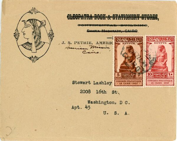 1927 Egypt Cleopatra Bookstore to USA Statistical Congress