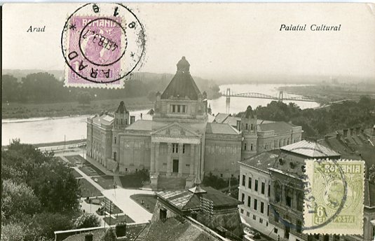 Romania: 1927 photocard titled ‘Palatul Cultural’ franked with 1l and 6l tied by Arad datestamp. Reverse blank.