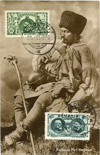 Romania: Postcard of National Costume franked with Independence Anniversary stamps tied by Ploesti commeorative datestamps.