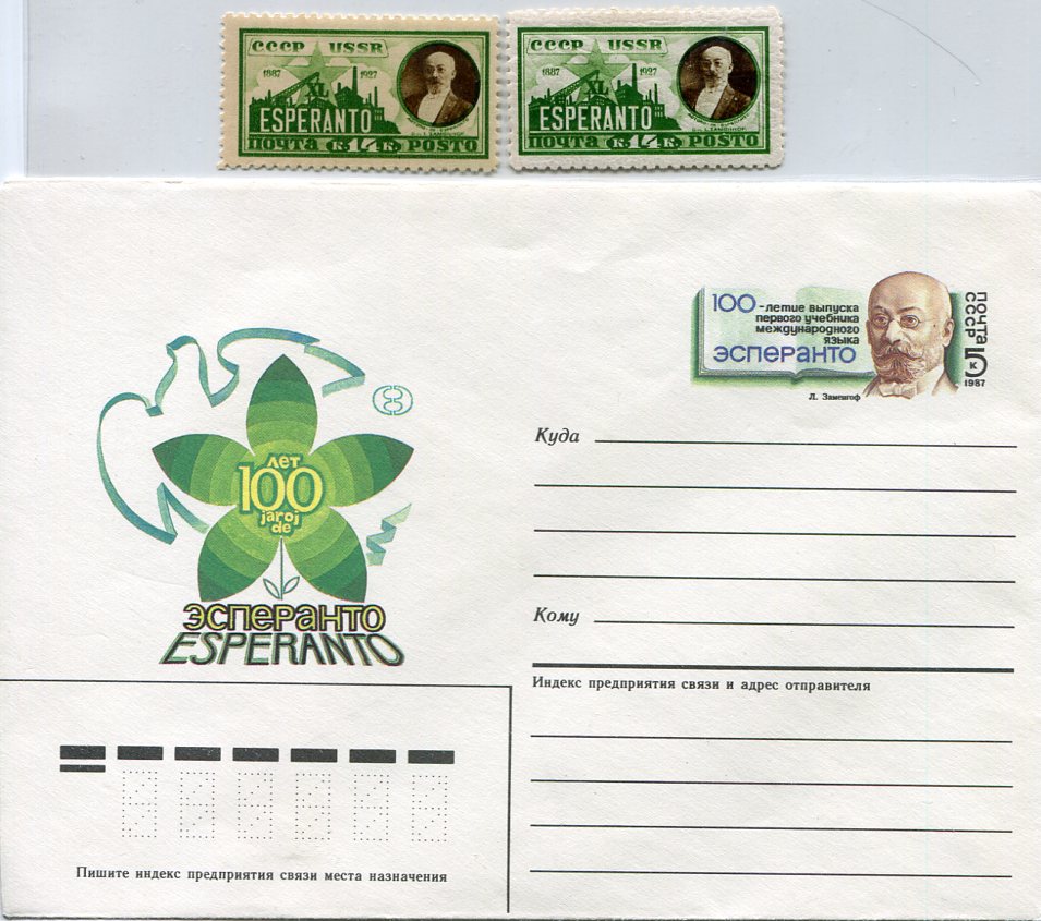 Russia: 1927 Esperanto inventor Zamenhof portrait 14k mint o.g. with watermark and unmounted mint without watermark stamps and 1987 unused centenary of Esperanto founder postal stationery. * / **