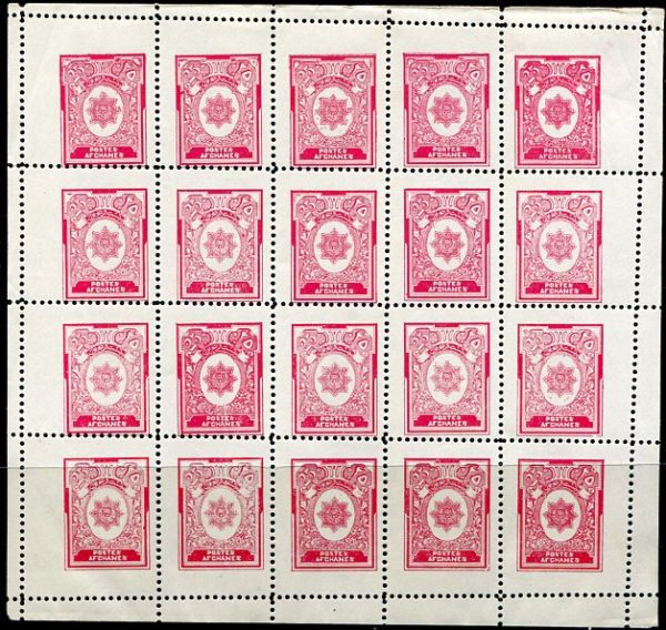 1928 Afghanistan 40p Imperf Between Tete-Beche Sheet