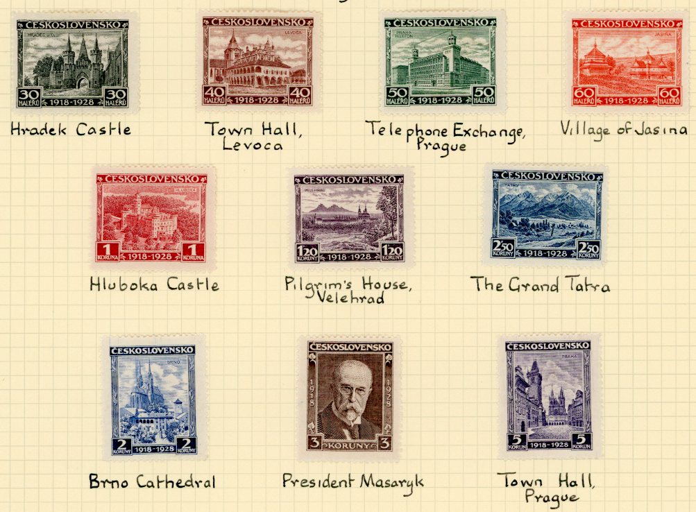 Czechoslovakia: 1928 Tenth Anniversary of Independence mint o.g. set. *