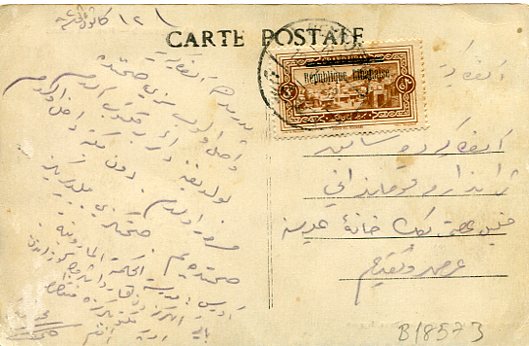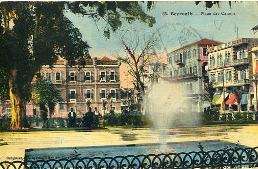 Lebanon: 1928 (18 January). Postcard titled ‘Place de Canons’ (ed. Ouzounian Kehyayan) to Syria franked with 3pi Republic overprint issue of 1927 tied by Beyrouth R datestamp and on reverse Antioche (Antakya, Turkey) arrival cds. Sg. 109