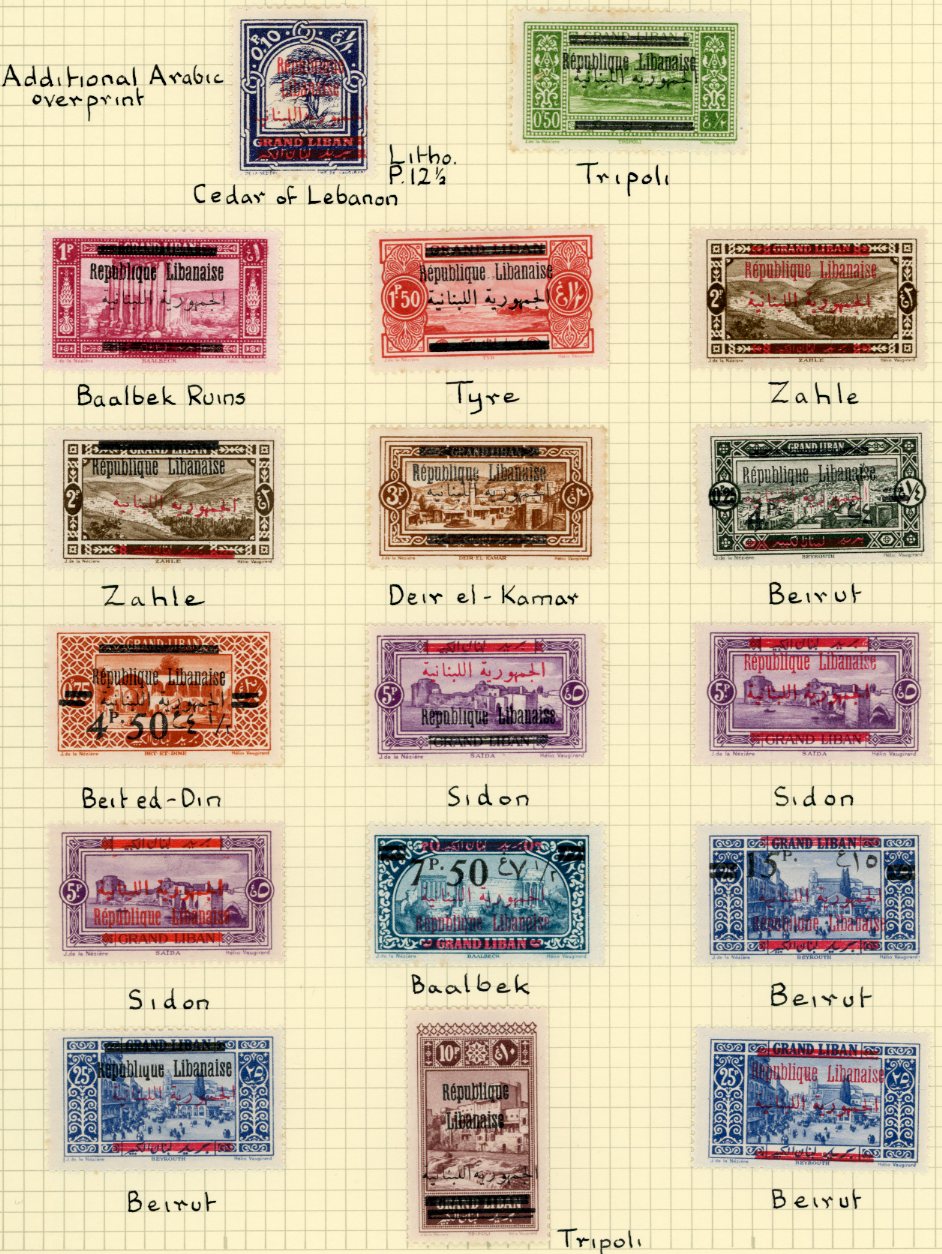 Lebanon: 1928 (May-December). Pictorial stamps with additional bar overprints mint o.g. set of 17. Sg. 124/136a *