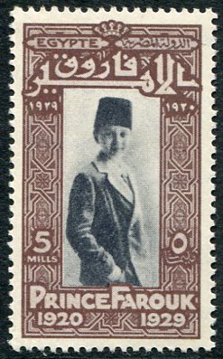 Egypt: 1929 (11 February). Prince Farouk’s Ninth Birthday 5m. slate centre in black, unmounted mint. Sg. 178a