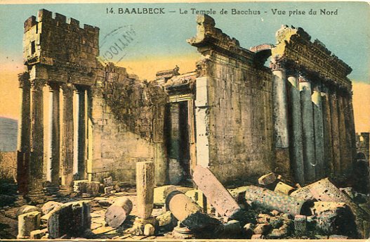 Lebanon: 1929 (11 February). Postcard of Baalbeck to Syria franked with 1pi Republic overprint issue of 1929 tied by Ottoman type Beyrouth datestamp and on reverse Antioch (Antakya, Turkey) arrival cds. Sg. 126