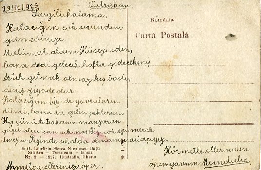 Romania: 1929 dated postcard with a message in Turkish titled ‘Turtucaia Giamia Sultan Hamid’ (ed. Sfetea Niculescu Dutu).