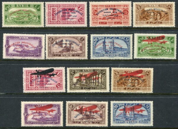 Syria – French Mandate: 1929 (8 September). Damascus Industrial Exhibition overprinted on pictorial stamps mint o.g. complete set of 14. Sg. 230/243 *