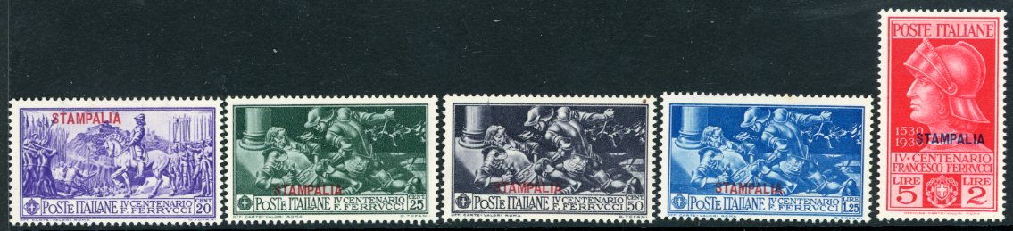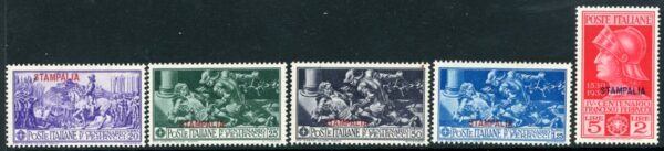 Greece – Dodecanese Islands – Italian Occupation: 1930 (20 October). Italian Ferrucci Issue overprinted STAMPALIA mint o.g. set of 5. Sg. 35/39 *