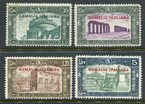 Somalia – Italian Occupation: 1930 (20 October). Third National Defence stamps of Italy overprinted “Somalia Italiana” mint o.g. set. Sg. 134/137. *