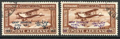 Egypt: 1931 (6 April). Zeppelin surcharged airmail used set. Sg. 185/186