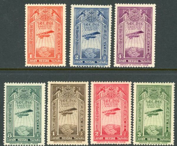 Ethiopia: 1931 (17 June). Aircraft over Map of Ethiopia mint o.g. set. Sg. 296/302 *