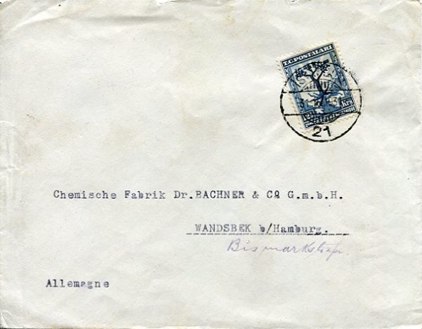 Turkey: 1931 (31 October). Cover to Germany franked with 12 1/2k Second Balkan Conference commemorative stamp tied by Istanbul 21 datestamp. Reverse no postal markings.