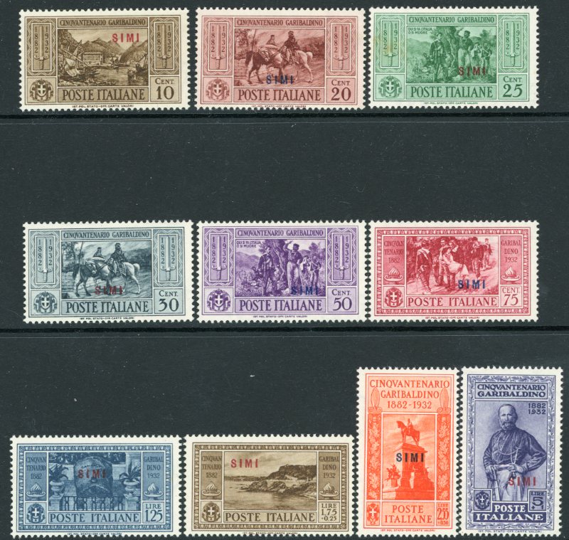 Greece – Dodecanese Islands – Italian Occupation: 1932 (28 August). Italian Garibaldi Issue overprinted SIMI mint o.g. set. 25c heavily foxed. Sg. 89/98 *