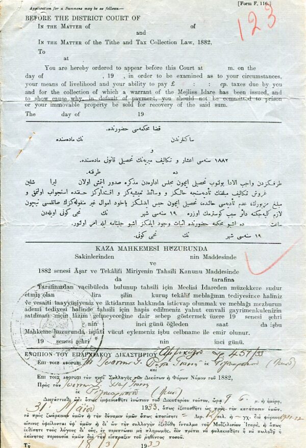 Cyprus Agia Triada Sipahi 1936 Mukhtar Seal