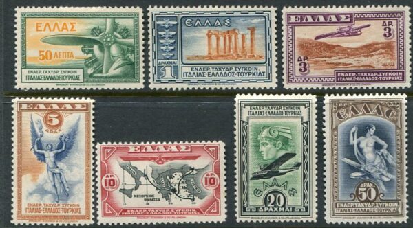 Greece: 1933 (10 October). Aeroespresso Italiana mint o.g. set. 50d has couple of tone spots. Sg. 461/467, Hellas A8/A14. *