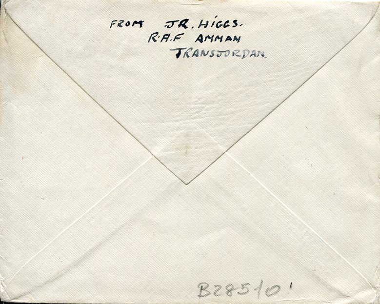 Transjordan: 1933 (11 October). Airmail cover from RAF Amman to Harrow, England franked with three 15m Petra pictorial stamps tied by Amman datestamp and three Insufficiently Prepaid for Air Mail / Should Be Sent By Ordinary Post. and below REVISED RATE / SEND BY AIR two lines hand cachets. Apparently this is the only cover with these hand cachets recorded. ex. Ted Proud