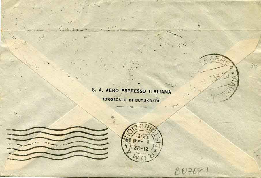 1933 Turkey 1st Istanbul Rome Flight Cover