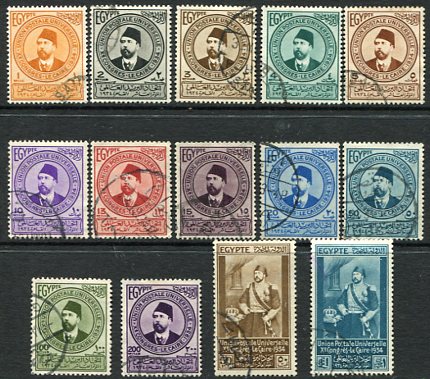 Egypt: 1934 (1 February). 10th Anniversary of Universal Postal Union – UPU used set of 14. Difficult to assemble. Sg. 219/232