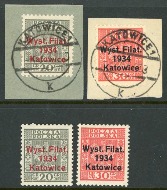 Poland: 1934 (5 May). Katowice Philatelic Exhibition mint o.g. and used on piece (probably CTO). Sg. 297/298 *