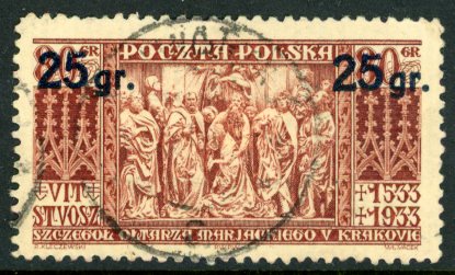 Poland: 1934 (1 October). Surcharged issue 25g. on 80g. with ‘gr.’ lower then ’25’ variety used. Sg. 303a. *