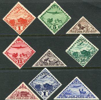 Tannu Tuva: 1934 (April). Airmail and Animals issue mint o.g. set of nine with 1t perf. 12 1/2 variety. Sg. 51/57, 58a, 59