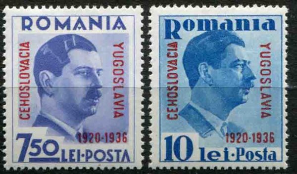 Romania: 1936 (5 Dec). Little Entente Czechoslovakia and Yugoslavia overprinted mint o.g. set. SG 1346/47
