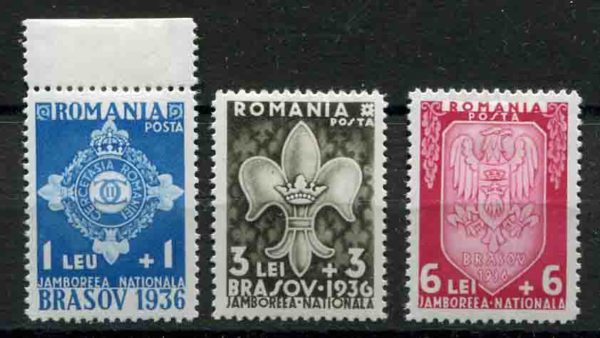 Romania: 1936 (20 Aug). National Boy Scout Jamboree, Brasov mint o.g. commemorative set. SG 1337/1339