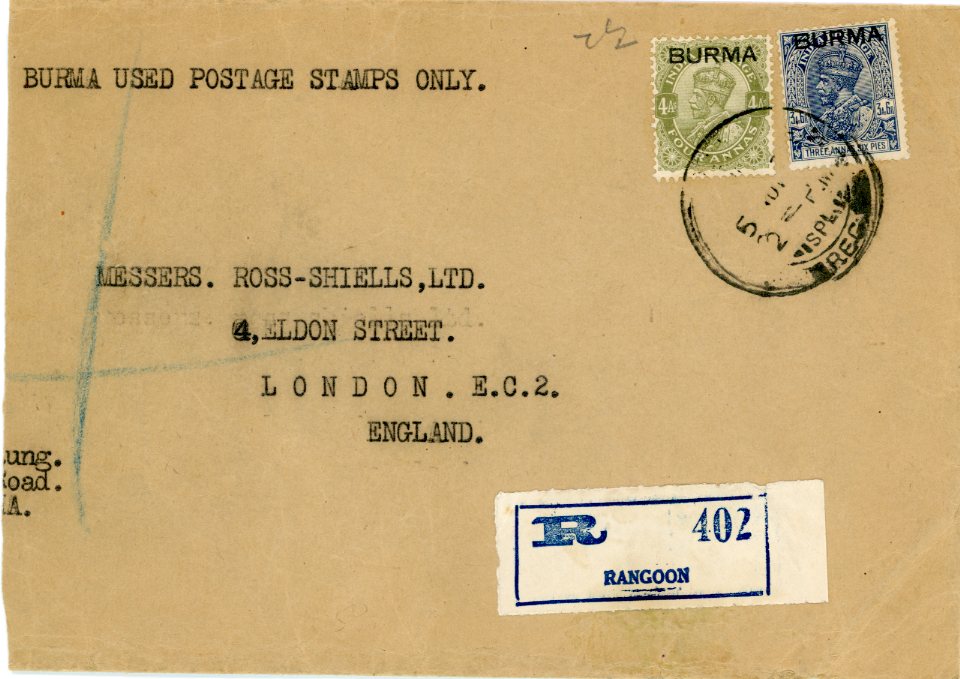 1937 Burma Rangoon Registered to London